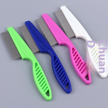 หวีสำหรับสัตว์เลี้ยงด้ามจับสีขาวมีเข็มเหล็กสำหรับสุนัขแมวกำจัดเห็บหมัดหนาแน่นวัสดุพลาสติกส่งตรงจากผู้ผลิต